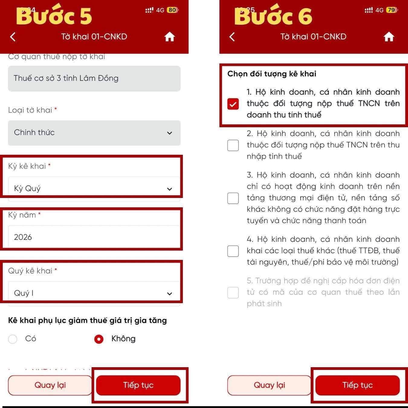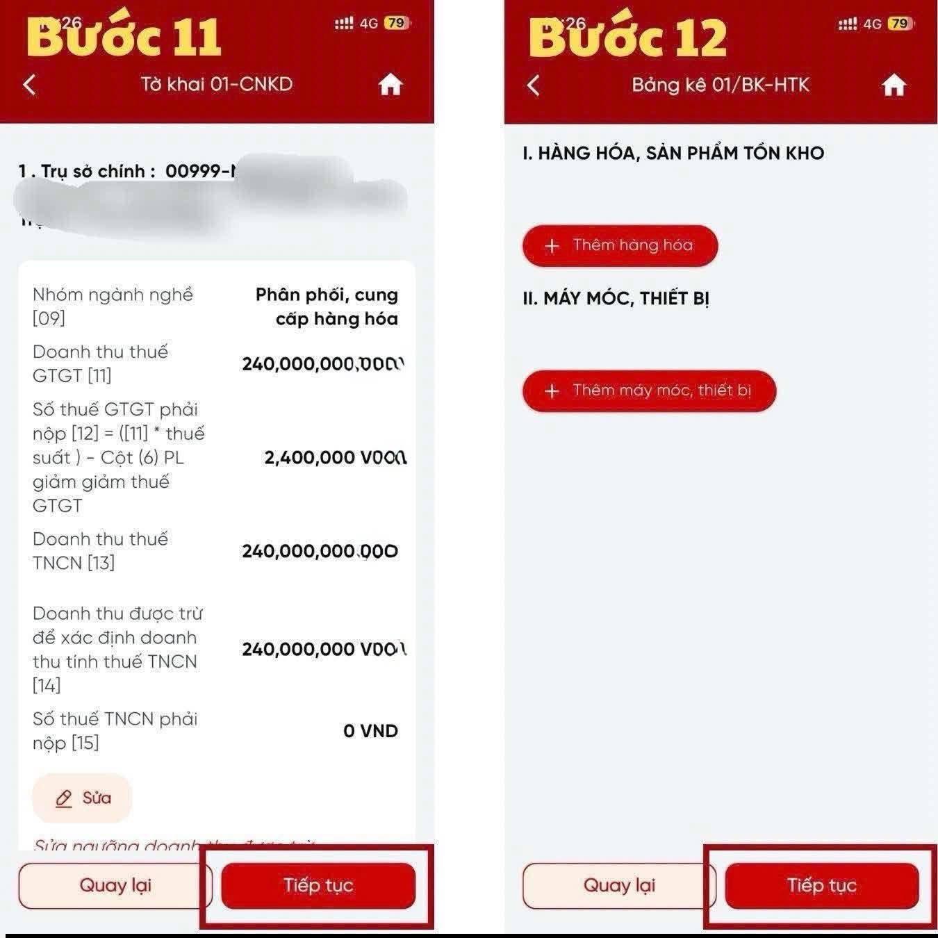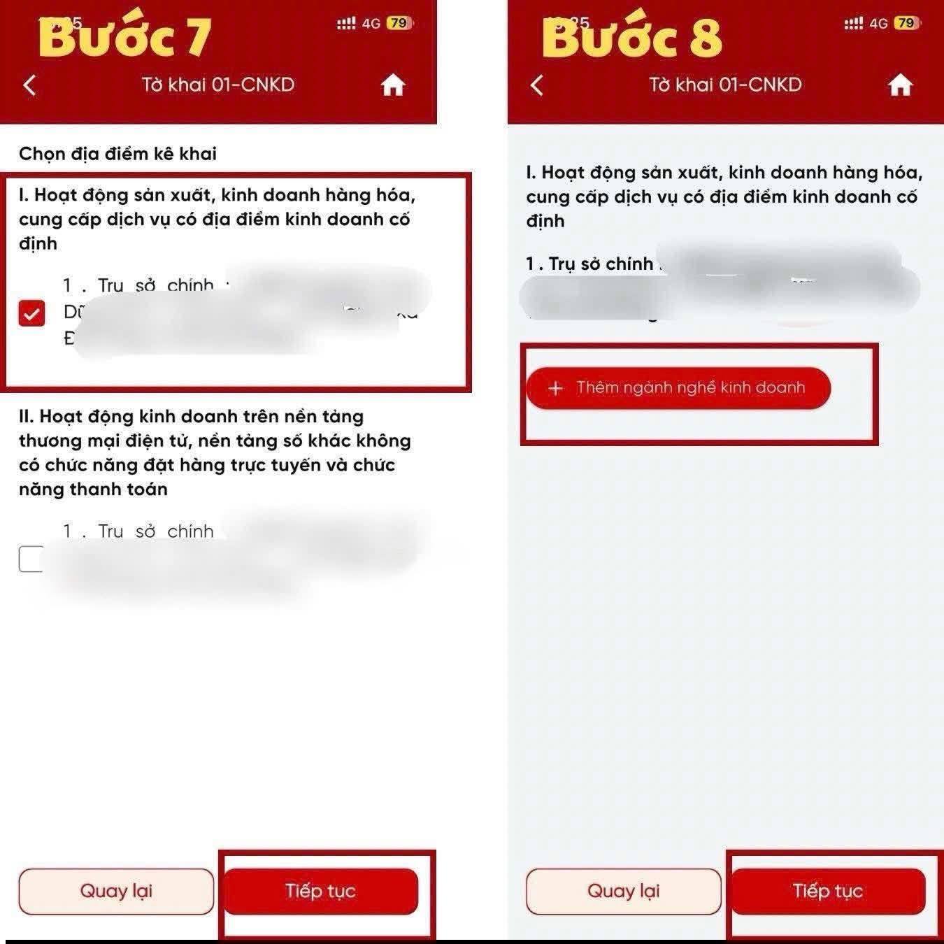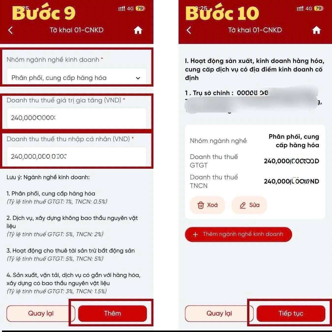 Bước 8–9: Chọn ngành nghề & khai doanh thu