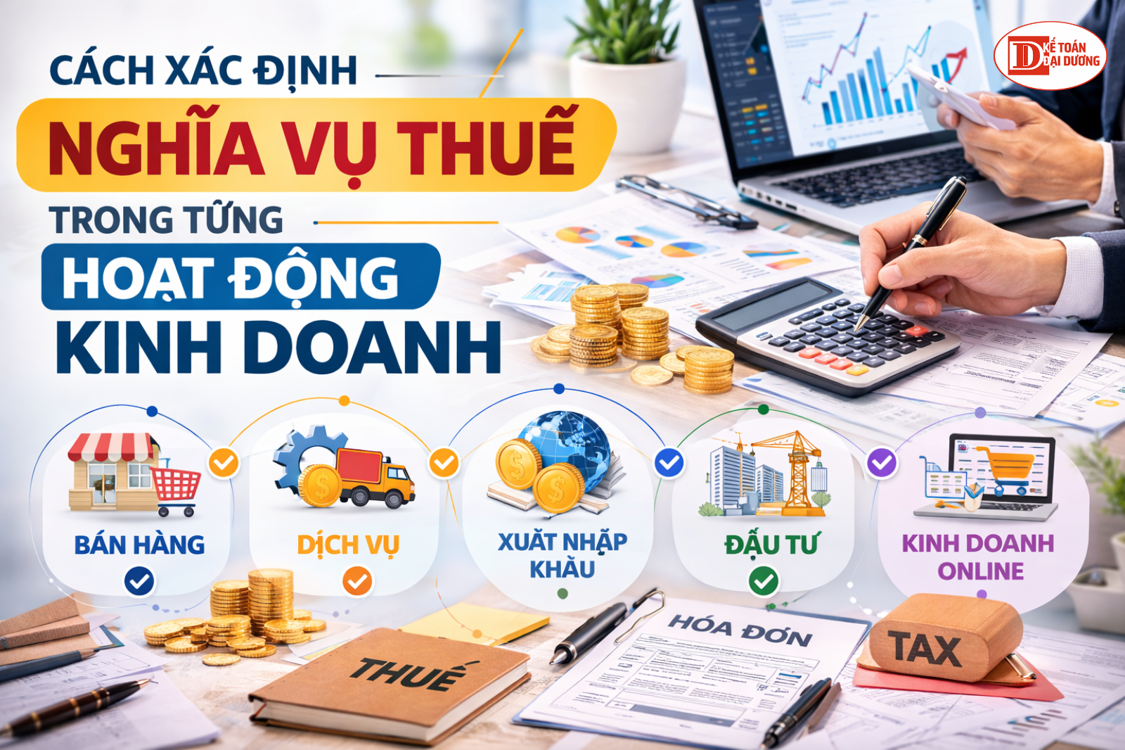 Việc xác định đúng loại thuế phát sinh trong từng hoạt động kinh doanh là bước quan trọng trong công tác kế toán - thuế của doanh nghiệp.