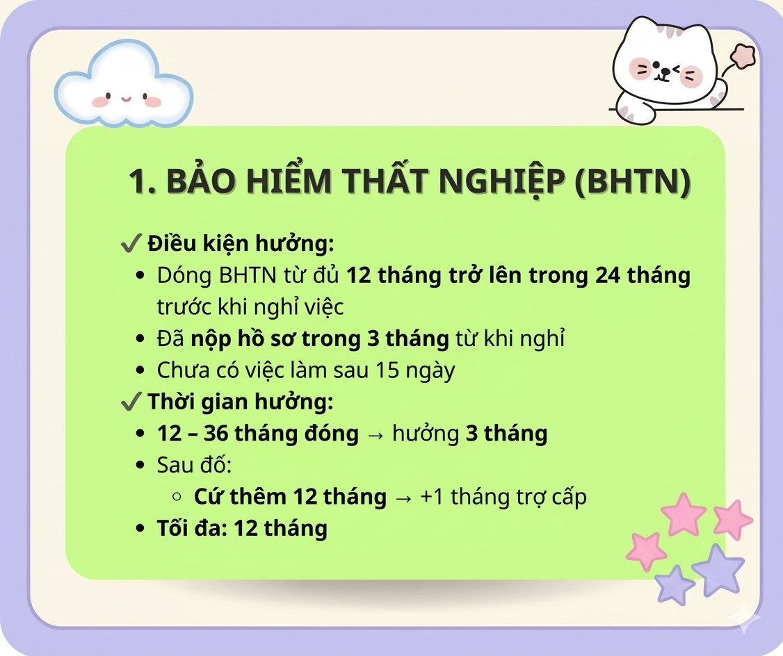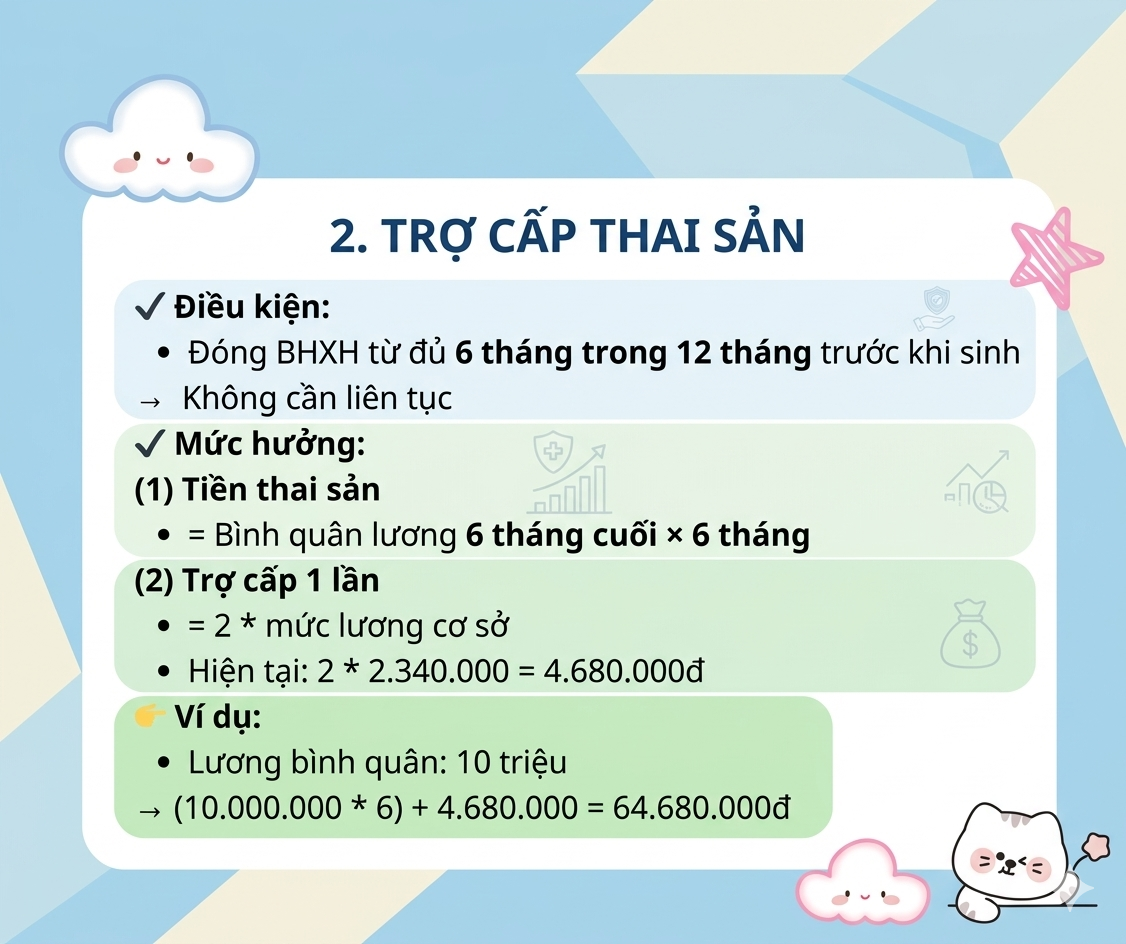 - Thai sản: đảm bảo thu nhập khi sinh con