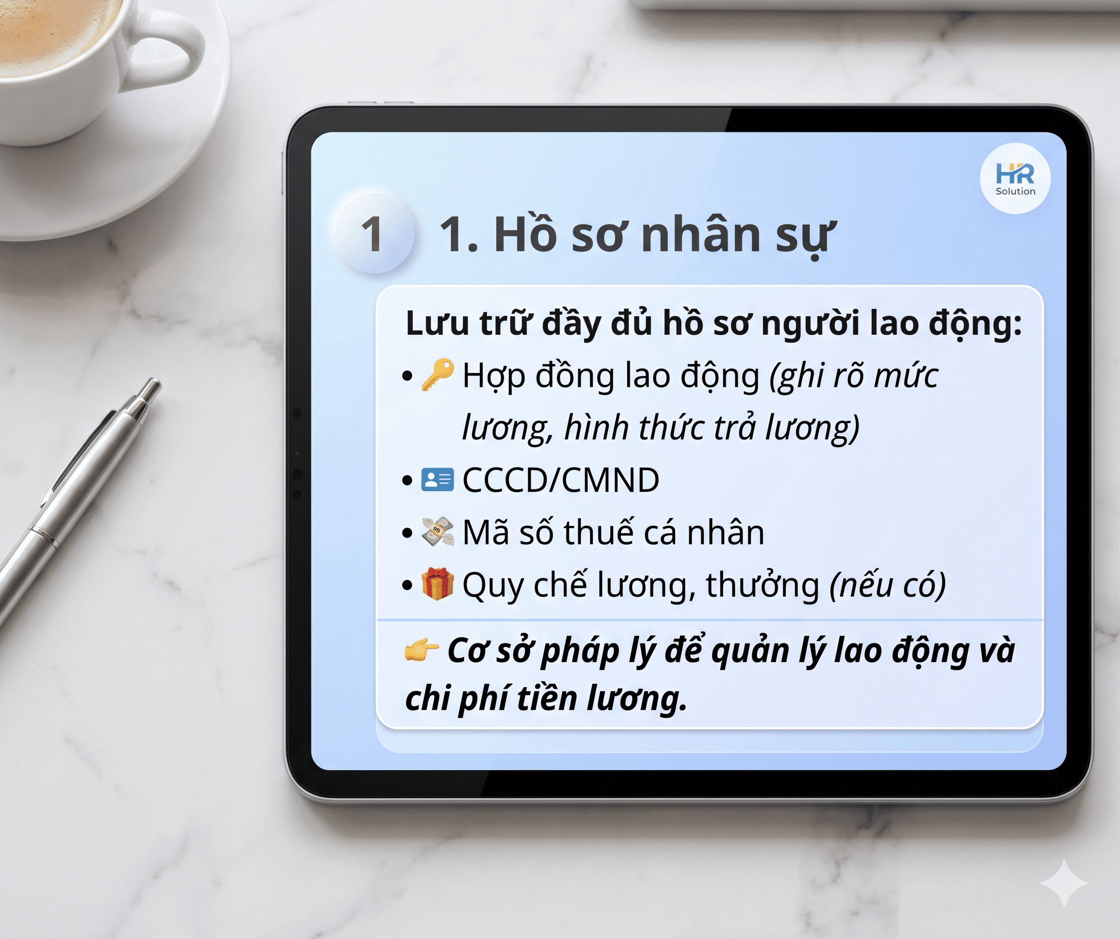 Đây là cơ sở pháp lý đầu tiên để quản lý lao động và chi phí tiền lương. Hồ sơ cần lưu trữ đầy đủ bao gồm: