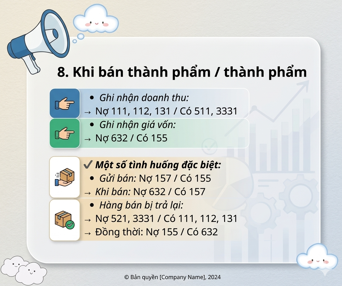 | Bán thẳng không qua kho | Nợ TK 632 / Có TK 154 |