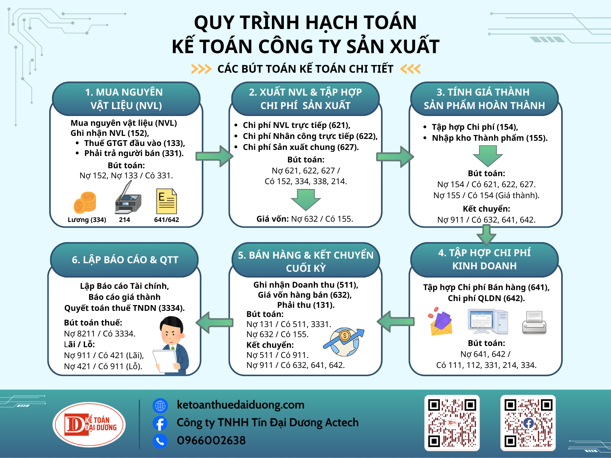 Dưới đây là QUY TRÌNH HẠCH TOÁN TRONG CÔNG TY SẢN XUẤT, tổng hợp chi tiết các bút toán kế toán từ khi mua nguyên liệu đến Báo cáo tài chính: