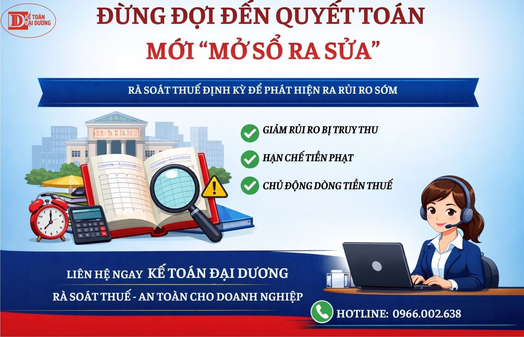 Liên hệ Kế Toán Đại Dương để được rà soát thuế định kỳ, phát hiện rủi ro sớm và bảo vệ doanh nghiệp trước khi cơ quan thuế kiểm tra.
